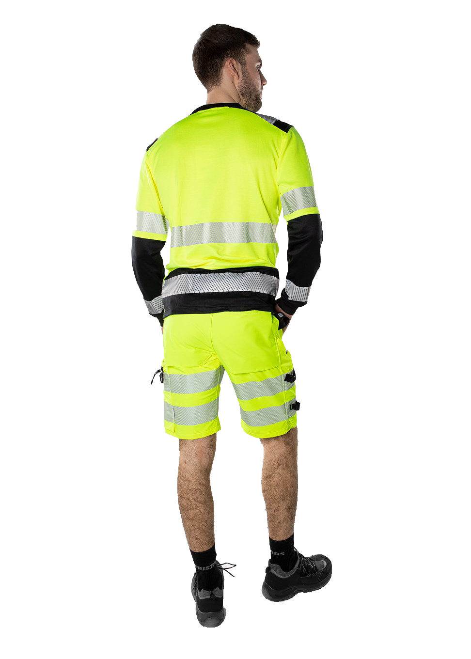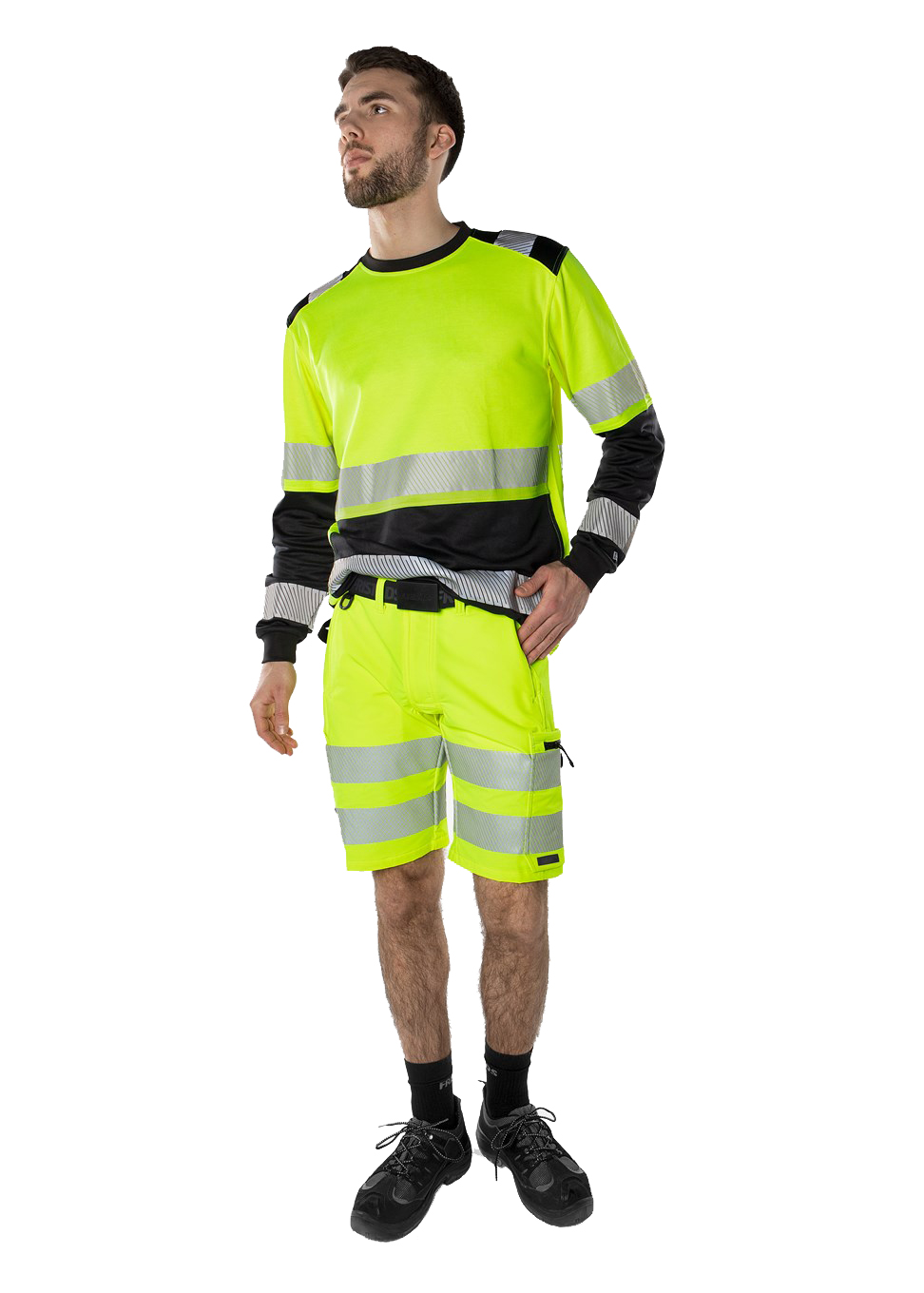 Sustainable high-vis shorts made from bio-based and recycled materials. Double comfort thanks to 4-way stretch and stretch inserts on the waistband. With EPD (Environmental Product Declaration). Concept: Stiby