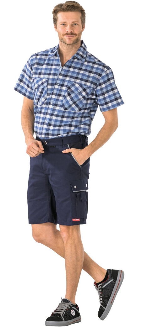 2 Cordura® pouch pockets, reflective piping on shoulder saddle and pocket flaps, 2 breast pockets, left with flap and press studs, right with additional patch pocket for mobile phone, elasticated waistband, concealed press stud strip as front closure, hanger in collar.