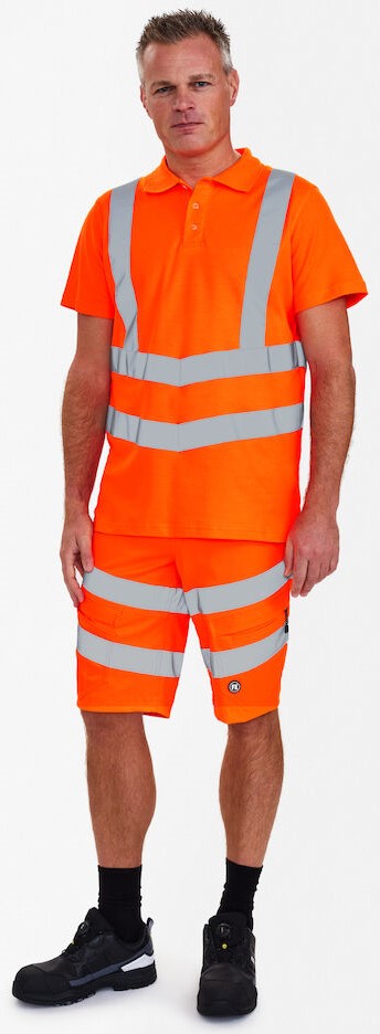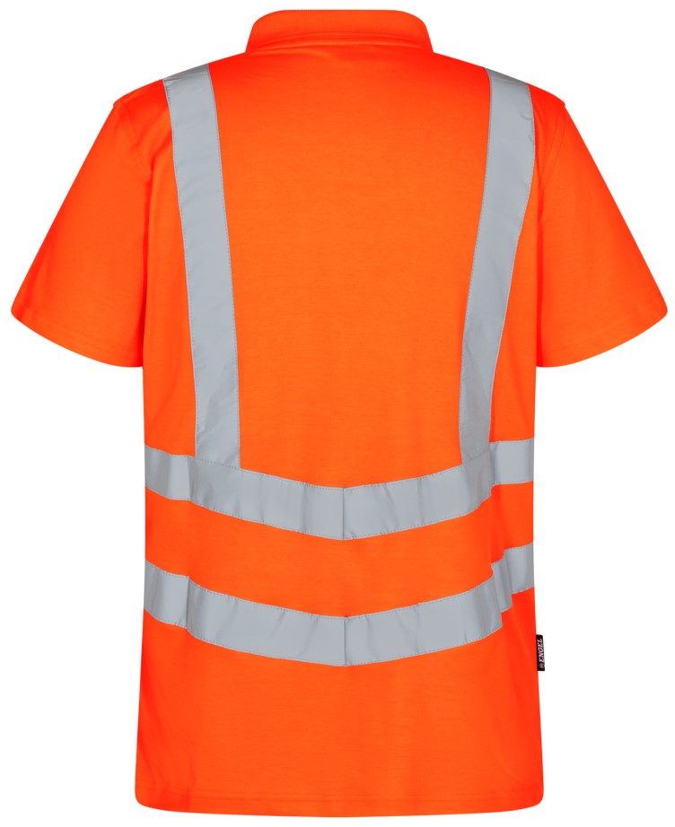 Attractive, fluorescent polo shirt in a modern design. The polo shirt is made from comfortable piqué fabric with cotton on the inside for added comfort. The polo shirt has a button fastening and a rib-knit collar. Reinforced seams. Stretchy reflective stripes for greater freedom of movement. Clothing class 2, tested after 25 washes.