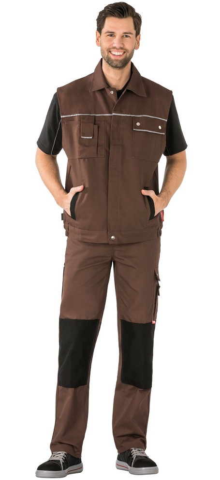 2 set-in Cordura® pouch pockets, reflective piping on shoulder saddle and pocket flaps, 2 breast pockets, left with flap and press studs, right with additional mobile phone pocket, elasticated waistband, concealed press stud front closure, hanger in collar.