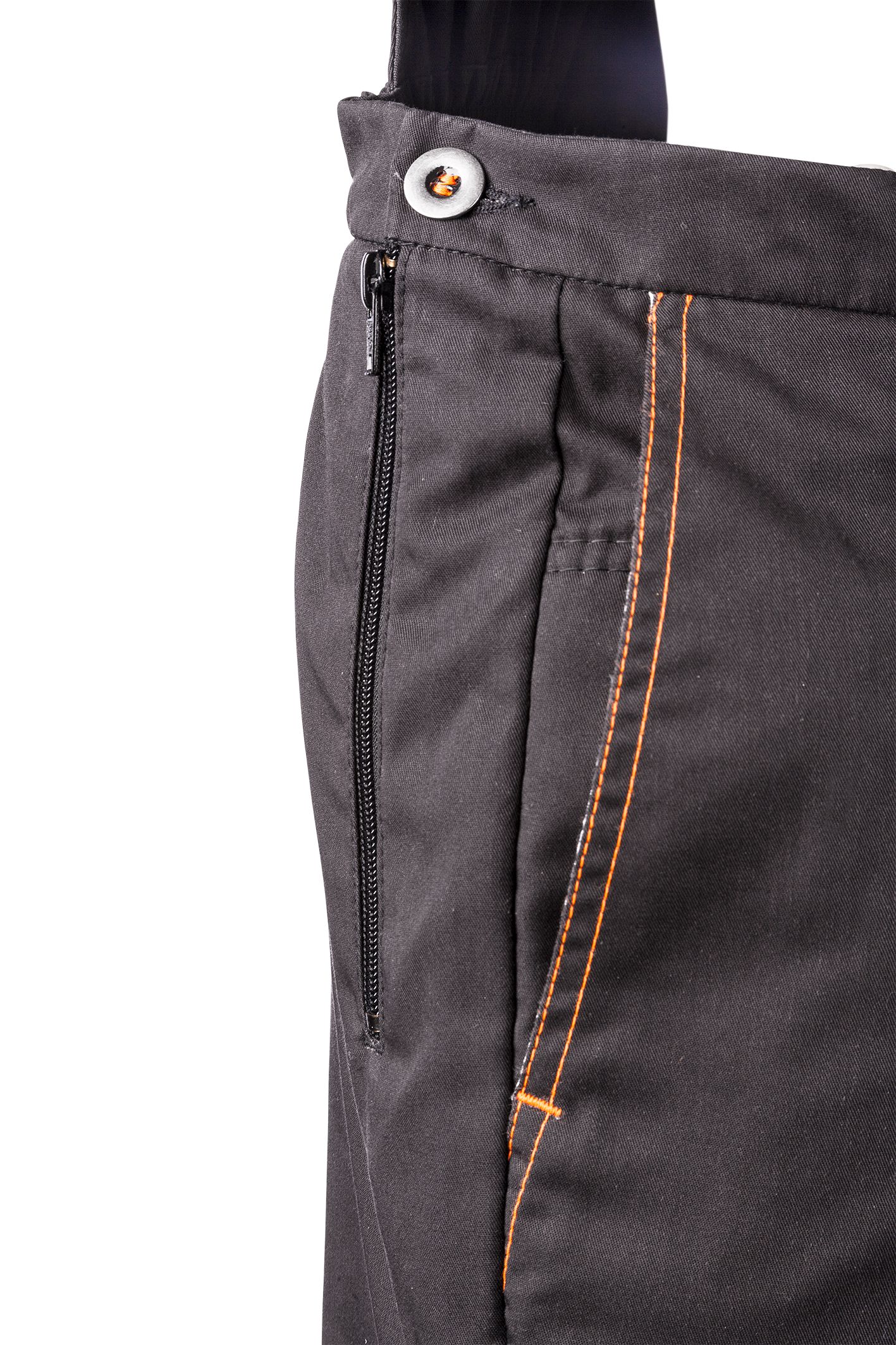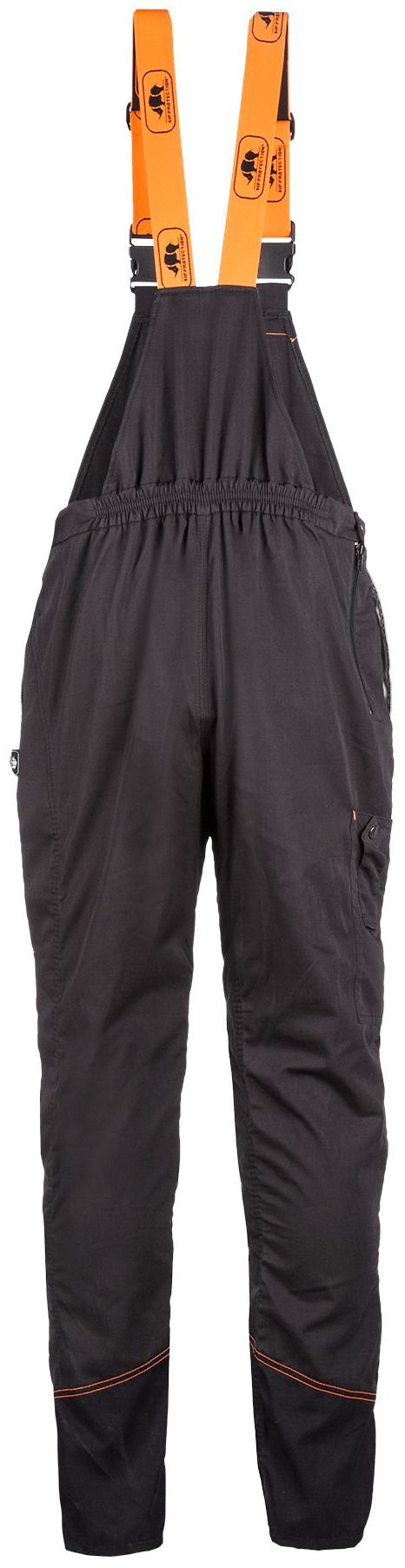 front bib with pocket and vertical zipper on the right side