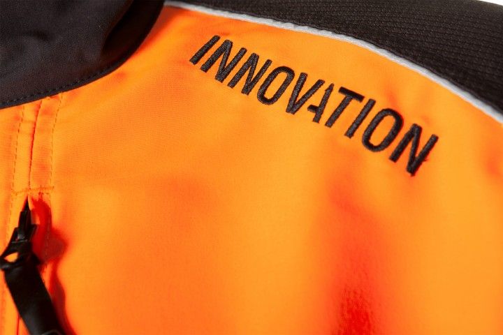 In the W-AIR work jacket from the Innovation series, combined with the W-AIR cut protection pants, you are always well dressed. Just like the trousers, it is extremely light and yet durable. The Pezatec fabric in orange and the reflective stripes ensure high visibility, which increases safety. Since the shoulder and collar areas are the most stressed areas at work, the pants are reinforced with waterproof Tektor for durability. Standards: No chainsaw protection FPA KWF PROFI fabric: Pezatec exterior fabric treated with Teflon™ (100% Cordura® ± 155g/m2) Tektor reinforcements (68% polyester - 32% polyamide with polyurethane coating ±345g/m2) Pezatec HV (100% polyester ±185g/m2) top fabric with water repellent Teflon™ finish Outside: Ergonomic collar Zipper under flap 1 set-in vertical pocket with zipper on the chest 2 inserted pockets 1 attached smartphone pocket with zipper on left sleeve sleeve constriction by means of velcro flap Elasticated waist Back and forearm