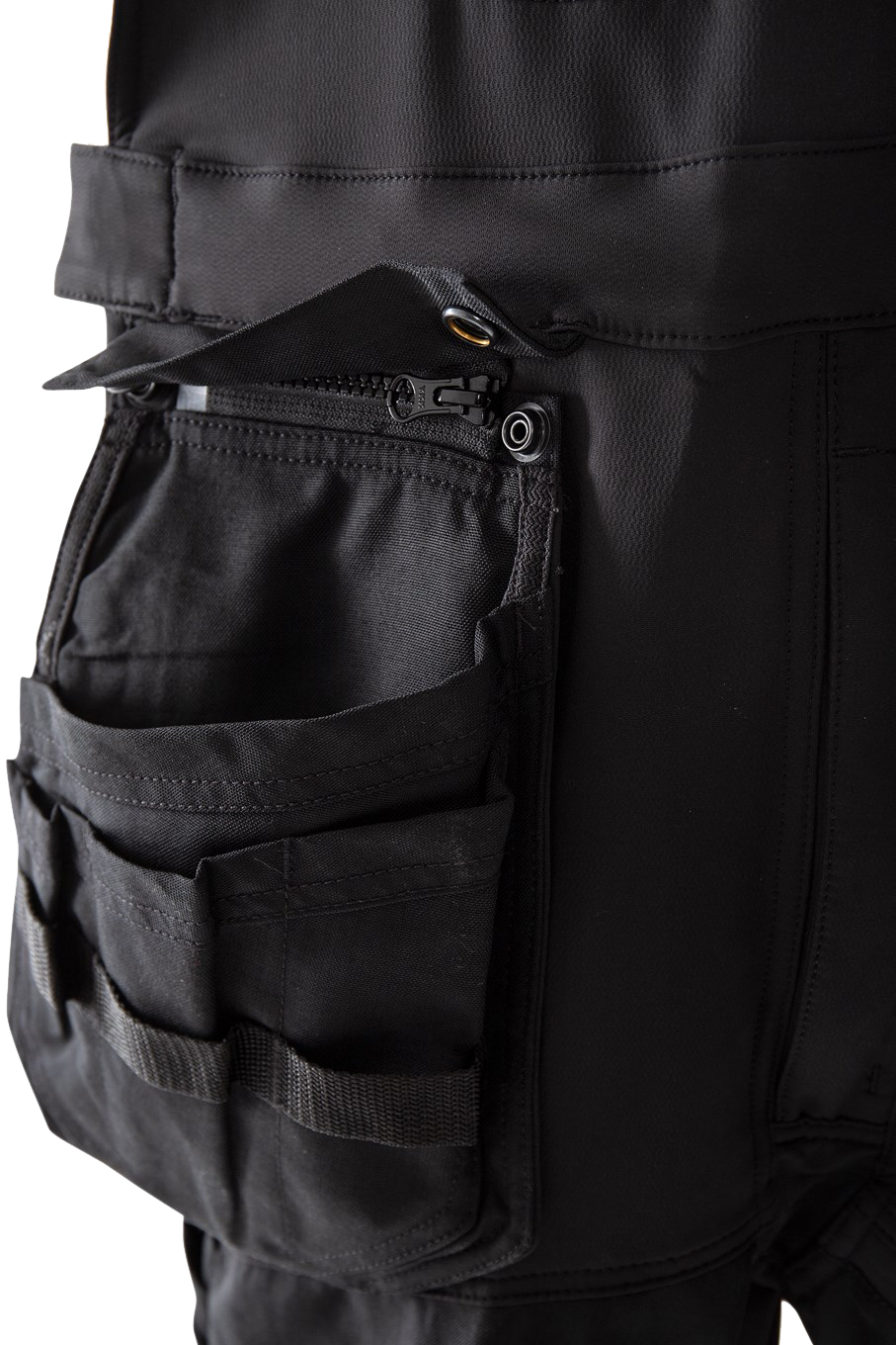 Stretch dungarees with detachable hanging pockets and flat stretch fabric. CORDURA® reinforced front for even greater durability. They are also equipped with various ventilation options, including at the knees and thighs. The trouser legs are extended at the front and fit perfectly around the shoes to prevent dirt and sand from getting in.