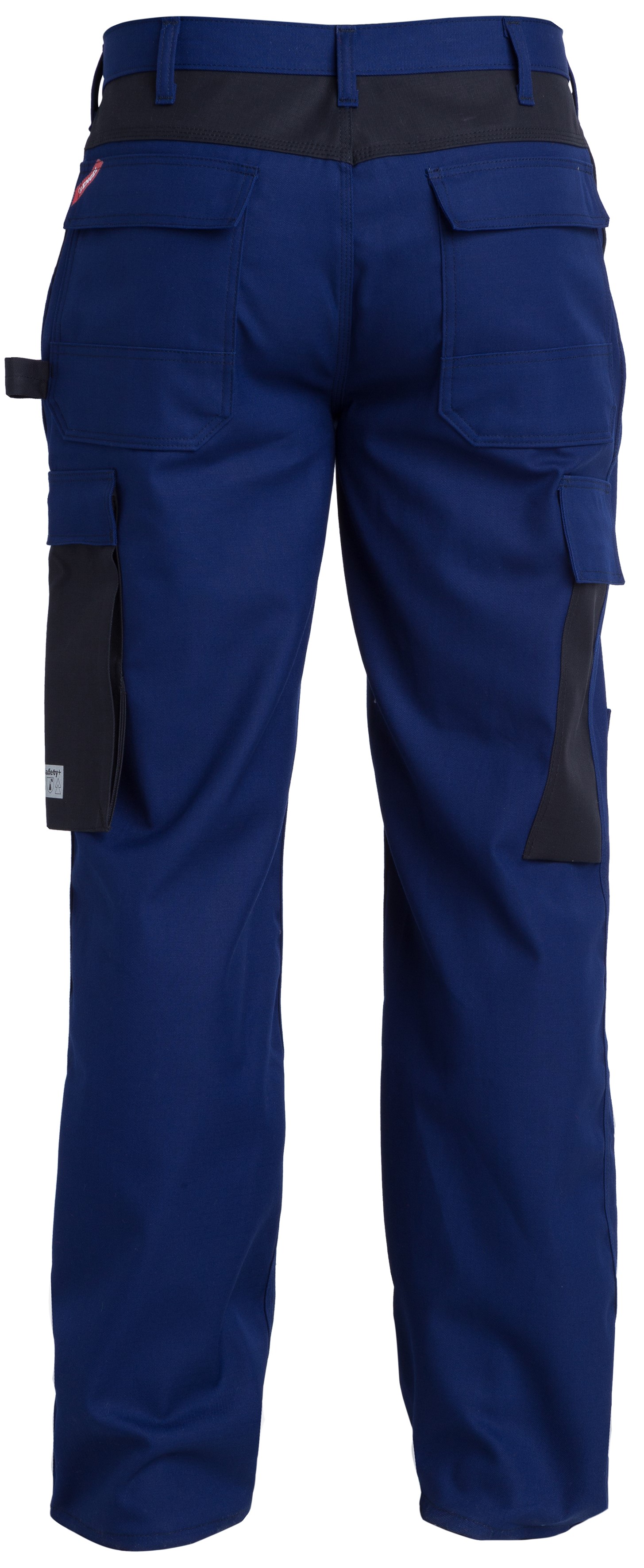 Waistband trousers with two concealed slit pockets. Reinforced back pockets with flap, hammer loop, folding rule pocket, knee reinforcement/knee pockets with Velcro fastener at the bottom. Functional details on pockets and waistband prevent sparks from catching. Antistatic, flame-retardant and protective against aerosols, spray and light splashes of chemicals.