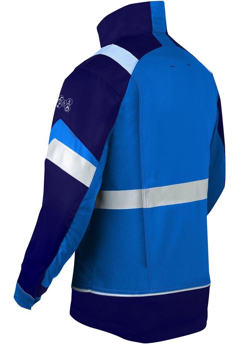 The flame-retardant and antistatic short jacket from the HAVEP® 5safety Image+ collection meets 6 standards and is made of cotton/polyester.