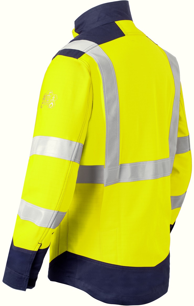 The navy-colored fabric is processed where the clothing gets dirty the quickest.Extended back section so that the back remains covered during movement.Inherently flame-retardant safety clothing of the highest quality.Lyocell feels soft and comfortable and is an environmentally conscious choice.Additional reflectors on the shoulders for increased visibility when bent over.