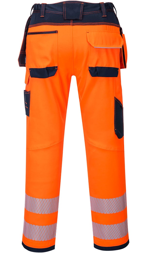 A sophisticated, innovative warning trouser with multifunctional holster pockets, knee pad pockets and convenient access to several thigh pockets for secure storage ofewahrumobile phone, keys and tools. Oxford fabric reinforcement at the load points and triple seams guarantee maximum durability. Workwear combines sport, lifestyle trends and function with a modern fit and improved comfortPortwest.Portwest By the use of high-quality materials the products are flexibly applicable in a broad spectrum in the industry, the trade and service. PW3 PW3Portwest™ is a modern workwear. It combines sport, lifestyle trends and function with a modern fit and improved comfort. Through the use of high quality materials, the products are used in a wide range of applicationsproduct features: Standards EN ISO 20471 Class 2 RIS-3279-TOM ISSUE 1 (ORANGE ONLY) EN 14404:2004+A1:2010 Type 2 (Level 0 (When used in combination with S156)) CE certified Durable polyester/cotton fabric with Texpel finish UPF 50
