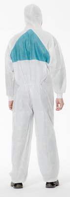 Robust, tearproof and still light: This durable 3Mprotective suit 4520 type 5/6 is made of a five layer antistatic material (SMMMS). The high water vapour permeability of the protective suit reduces heat build-up and gives the wearer a good, comfortable feeling - even during heavy physical activity. Elastic inserts on the hips, ankles and wrist ensure a pleasant wearing comfort and improved freedom of movement. The two-way zipper with taped flap offers additional protection. The suit has antistatic treatment on both sides (EN 1149-5:2008) and, thanks to its special material, is low-linting. The 4520 TYP 5/6 3Msuit provides protection from hazardous dusts (Type 5), light liquid splashes (Type 6) and radioactive, contaminated particles (EN 1073-2:2002) Standard: EN ISO 13982 (Type 5), EN 13034 (Type 6), EN 1073-2, EN 1149-5 Protection class: Cat. III Lightweight material with high breathability Protection against dust and certain liquid splashes Elastic inserts on hips and ankles for a