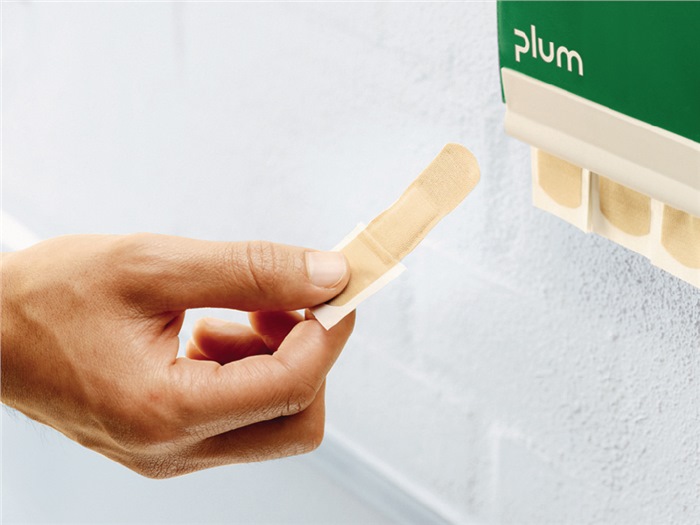 Plaster dispenser with 90 waterproof plasters, which are particularly suitable for damp working environments. The plasters are made of protective PE material.  The dispenser can be used wherever there is a risk of minor injuries and cuts. Due to its small dimensions, the dispenser can be easily attached to almost any workplace and thus exactly where the need is greatest. The QuickFix can either be screwed on or attached with adhesive strips.  Product features: