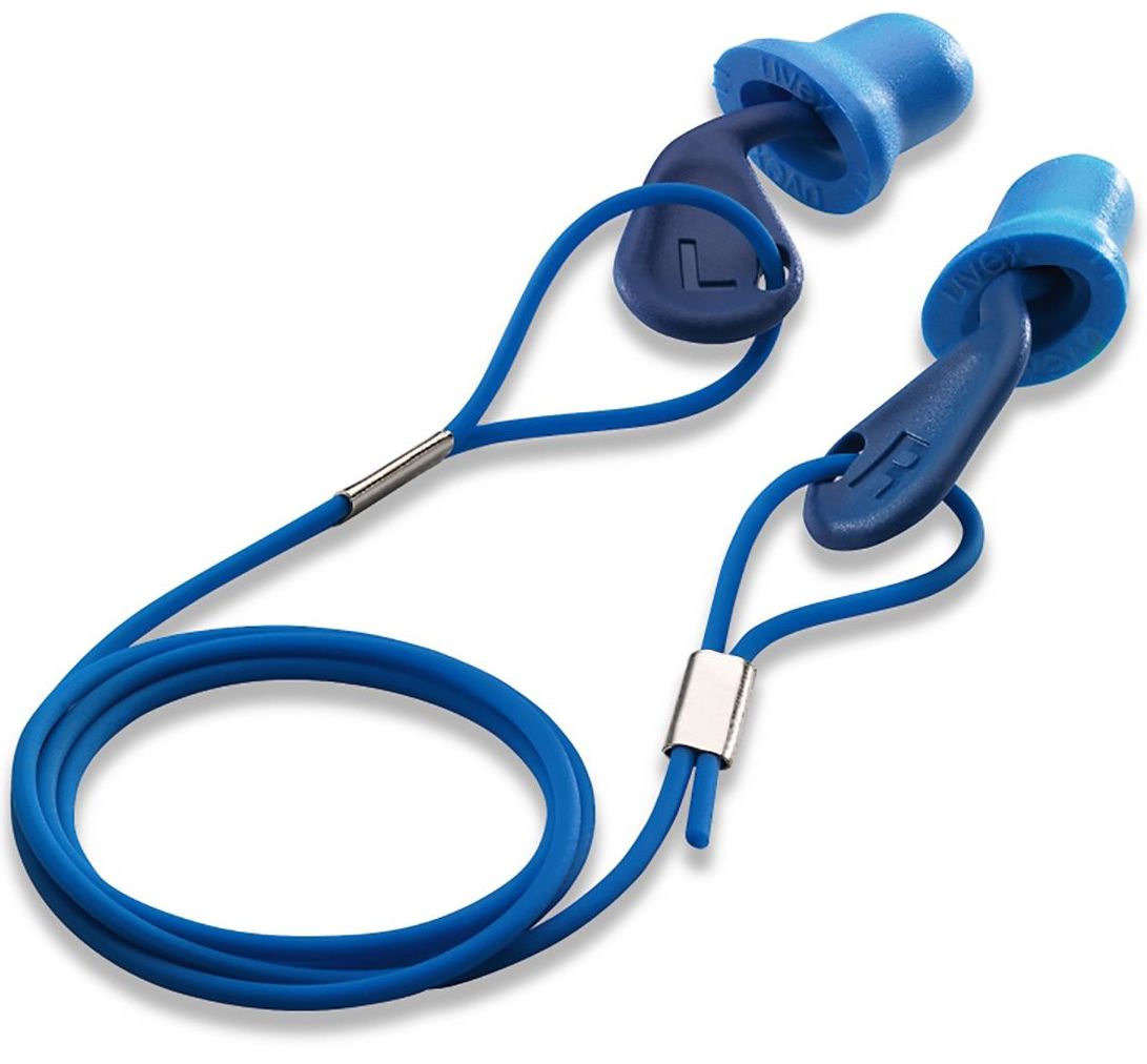 These innovative earplugs adapt perfectly to the human ear. The innovative design of the uvexxact-fit is based on the anatomy of the auditory canal. This noticeably reduces the pressure on the ear canal - even during long wearing times. In the detec version, the uvexxact-fit is easy to detect optically and mechanically thanks to its striking blue and a metal ball.General Characteristics:	Meets the EN 352-2 standard and the additional requirement "Hearing of warning signals, general" (W)	26 Decibel Insulation - H: 28 dB, M: 23 dB, L: 19 dB	Fits perfectly to the shape and size of the ear canal, minimizing leakage for ideal fit and protection	Incorporated metal parts and the blue colouring are used for recognition in production	Detectable disposable earplug with thumb recesses	Dispensable spare plugs	Colour: blue	Size: M	Refill box, 400 pairs loose	Version with reusable pinComfort features:	Thumb recesses allow quick and easy handling	Shape based on the anatomy of the human ear - for a co