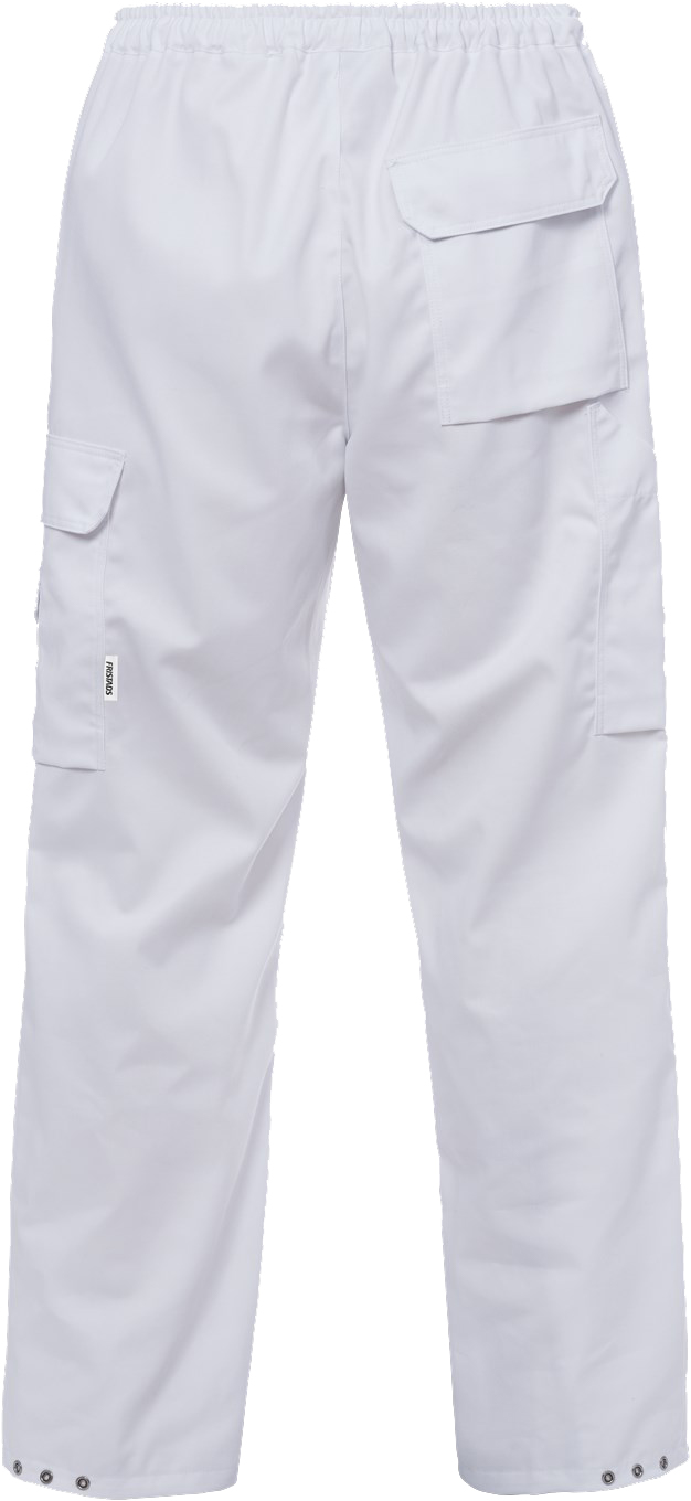 Trousers with adjustable waist and pockets in accordance with DIN 10524 for use in the food industry.