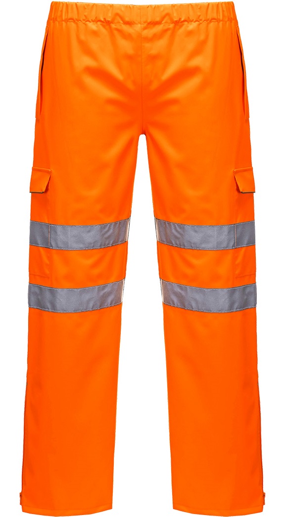 waterprooferdiand windproof protection. These trousers have an elastic waistband and inner drawstring for a comfortable fit. Underwear can easily be reached through side pockets.The PWR™ warning PORTWESTprotection collection is made up of ultra-modern, high-performance, waterprooferdiand breathable textiles. Using innovative technology, the base fabric has been designed to provide a technical barrier against the elements that provide the maximum watererdi, breathable and windproof protection that far exceeds today's highest Class 3:3 requirements for EN 343. In addition, the microporous fabric offers exceptional elongation. Properties that ensure excellent flexibility for the wearer. The outer fabric surface is treated with a Texpel finish to protect against water and oil stains	Standards: EN ISO 20471 Class 2, RIS-3279-TOM ISSUE 1 (ORANGE ONLY), EN 343 Class 3:3	CE certified	Material: outer fabric: PortwestPWR 200g	The strong coating is oil, dirt and water repellent	Watererdiand br