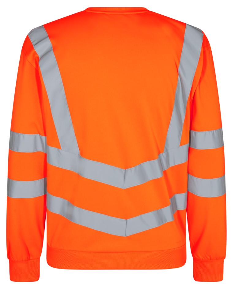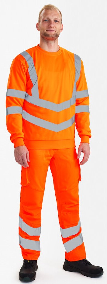 Comfortable, fluorescent sweatshirt in a modern design. Slightly brushed inside, making the fabric soft and comfortable. Ribbed neckline, sleeves and bottom hem. Stretchy reflective stripes across the shoulders and around the sleeves and waist. Clothing class 3, tested after 25 washes.