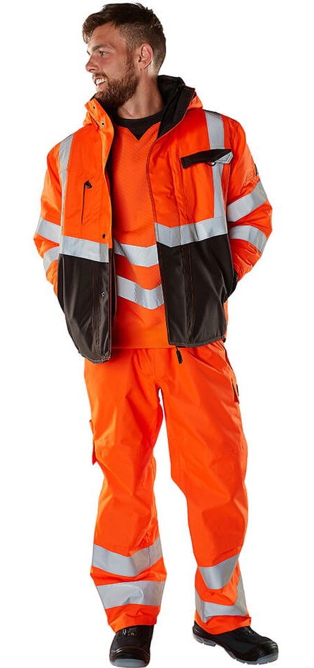 - Ribbed cuffs at the neck, bottom edge and wrists