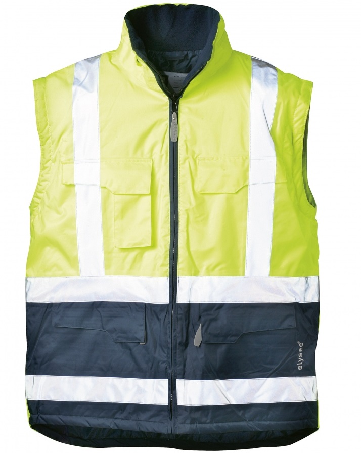 Standard: EN ISO 20471 class 3 (inner jacket separate class 3, vest separate class 2), EN 343 class 3/1, EN ISO 13688 Upper: 100% polyester, Oxford breathable PU coating Breathability: 3,000 g/m²/24 h Water column: 5.000 mm Sizes: XS-XXXXL Padding: 100% polyester Lining: 100% polyester Colour: fluorescent yellow, navy set off wind and watererdi, highly breathable Welded seams Reflective stripes from 3M™ Scotchlite™ Reflective material robust Oxford fabric: oil- and dirt-repellent, highly abrasion- and tear-resistant detachable storm hood with fleece lining concealed 2-way YKK® front zipper and press studs/velcro fastener Inner jacket can also be worn as a vest Inner jacket also with YKK® front zipper sleeves in ergonomic cut for maximum freedom of movement and comfort unbuttonable rain gutter in the hem easy emblem application by zipper in the lining of the inner jacket Bags, outer jacket: 2 breast pockets with Velcro or zip fastener 2 hip pockets with velcro and zipper 1 sleev