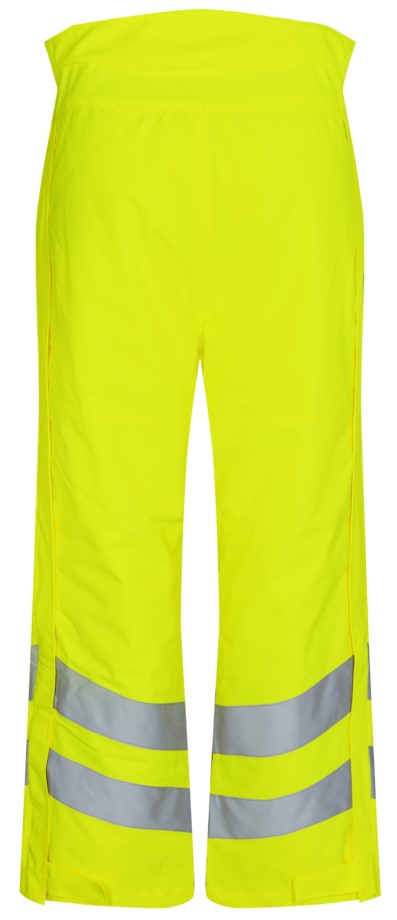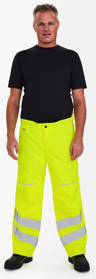 Fluorescent, breathable, waterproof and windproof winter trousers with taped seams. Two front pockets with Velcro fastener. D-ring at the front for attaching ID cards, for example. Extra high lumbar area and adjustable elasticated waist for maximum comfort. Concealed two-way zipper on the legs that allows access to the inner garment and snow guard/wind guard on the legs. Reinforced knees. Reflective stripes on the lower leg. Clothing class 3, tested after 50 washes.