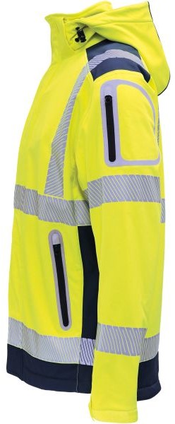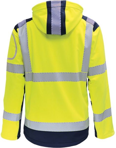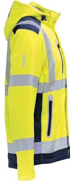 Product information "Vizwell VW177TY high visibility softshell jacket with hood fluorescent yellow navy"