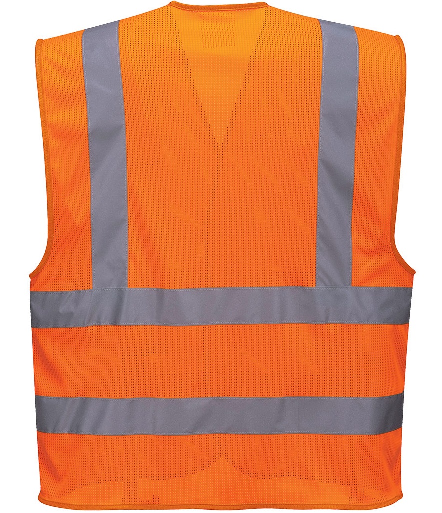 mesh vest, uses our MeshAir fabric, which is fully tested to EN ISO 20471, and allows increased breathability to keep the wearer cool. A perfect choice for those working in warmer environments. The Portwestwarning mesh air fabric is lightweight and breathable, making it ideal for working in warmer conditions. The open mesh material uses an advanced knit construction that ensures excellent ventilation. The highly visible MeshAir fabric is fully tested and certified to EN20471. Our extensive warning collection, meets the highest requirements in design and workmanship to ensure that articles comply with the latest EN ISO 20471 & ANSI standards. Innovative and technical, our warning collection is ideal for those who don't compromise on style, comfort, protection and performance. Standards: EN ISO 20471, Class 2 100 % polyester mesh 150 g CE certified Cooling mesh fabric Reflective stripes for good visibility Velcro fastener for easy closure Generous fit for wearing comfort Reflective stri