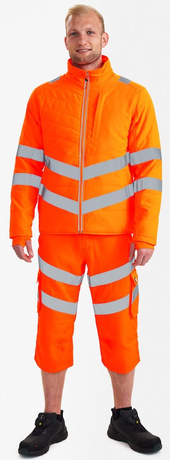Warm, fluorescent jacket in a modern design with wind and water-repellent properties. The jacket can be combined with the 1146-930 models, which have a zipper for zipping in. Reflective zipper at the front. Two side pockets and chest pocket with zipper. The jacket has an elastic waistband at the bottom. Additional wind flap made of elastic material in the sleeves. The storm flap with thumb opening can be pulled over the hand to protect against the cold. Reflective stripes across the shoulders and around the sleeves and waist. Clothing class 2, tested after 50 washes.