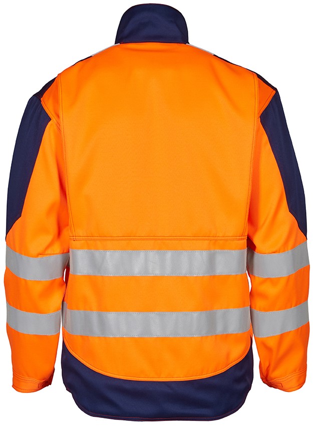 Jacket with button placket and front zipper. Extended back section. Concealed Napoleon pocket on the left chest. Two slit pockets with zipper. Two inside pockets. Adjustable cuffs with Velcro fastening. Back pleat for more comfort. Flame-retardant LOXY® reflective stripes. Functional details on the pockets and the movement pleat prevent sparks from getting caught. Antistatic and flame-retardant. Clothing class 2.