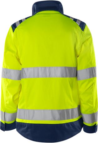 Functional and sustainable High Vis jacket for women, made of lightweight organic cotton and recycled polyester. Practical pockets with zippers for storage. With (Environmental Product Declaration).