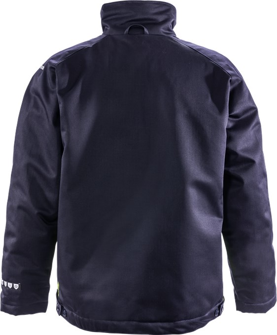 Flame-retardant winter jacket made of durable robust material, water-repellent and with high wearing comfort. Suitable for industrial washing.