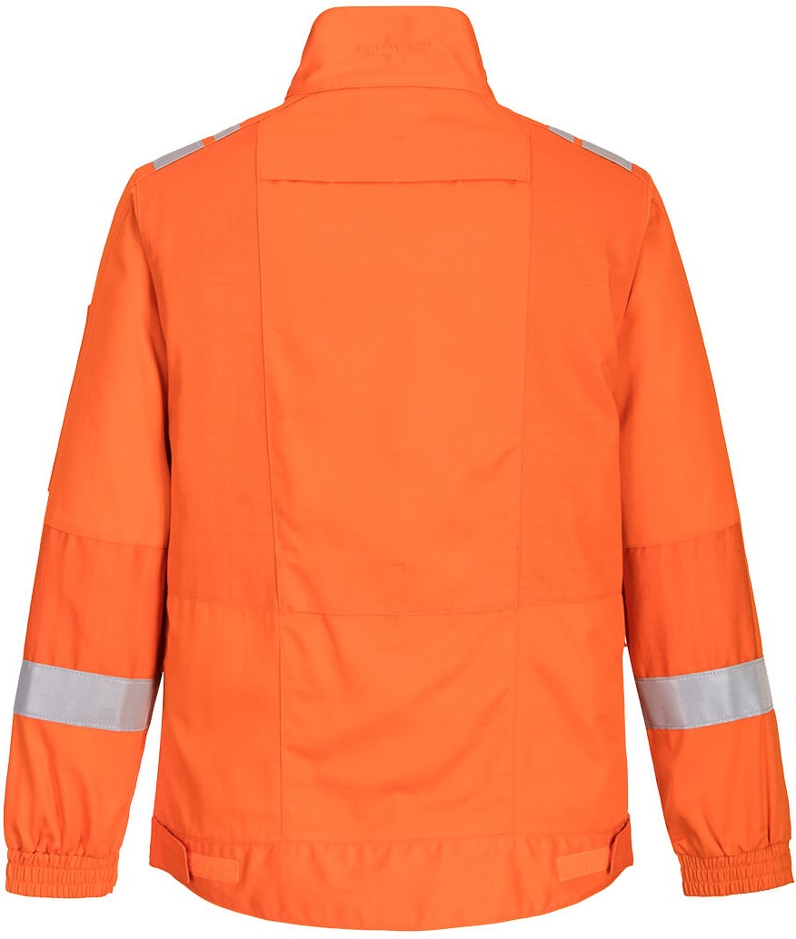 Contemporary work jacket that fits as well as it looks, with innovative design features such as stretch panels that provide excellent comfort and flexibility in key areas of movement. Other key features include upper and lower back ventilation, multiple pockets for ample storage, adjustable cuffs and reflective trim.
