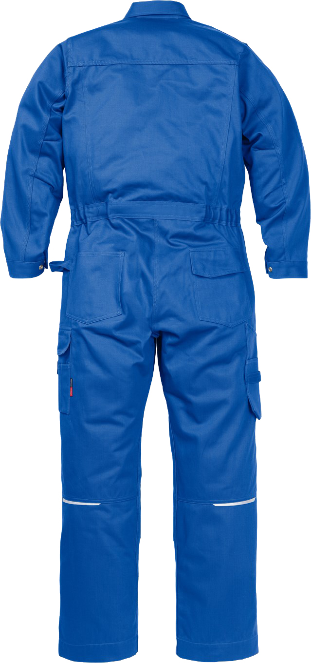 Coverall with knee pockets for industrial work, made of 100% durable and comfortable cotton. Suitable for industrial laundering.