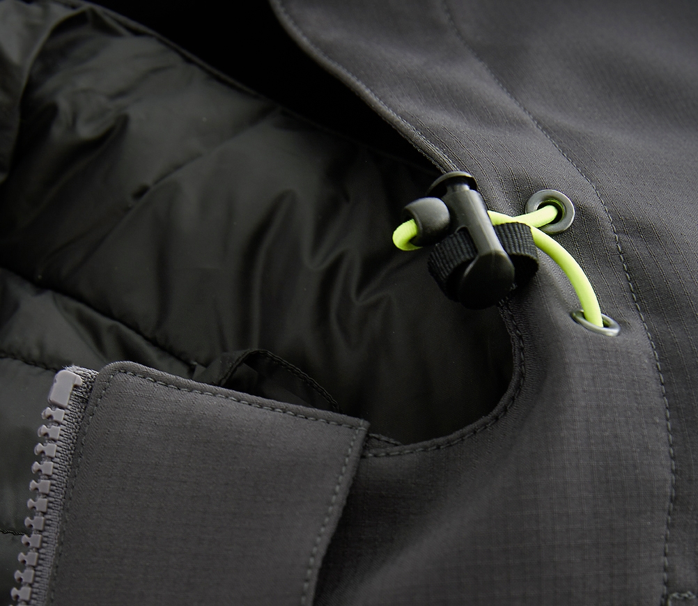 Warms, protects and fits. KNOXVILLE is particularly comfortable to wear thanks to its low weight. The robust ripstop fabric, a laminated functional membrane with quilted inner padding and the zip-off storm hood keep out wind, cold and moisture. The ripstop fabric also prevents tearing in the event of damage. Chest and slash pockets and an elaborate inner finish offer plenty of storage space and functionality