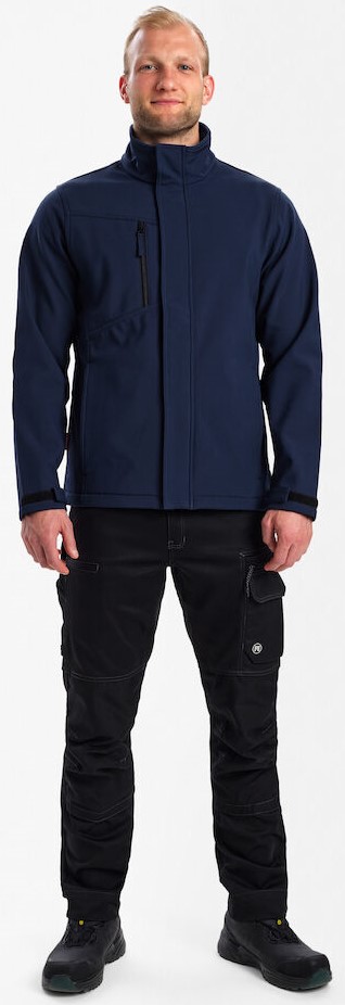 Practical and classic softshell jacket, wind and water repellent, with a more environmentally friendly coating that does not contain fluorine. The softshell jacket is a good transition jacket in early spring or fall, when it can be cold in the mornings and evenings. The wind and water-repellent material keeps heat loss to a minimum, e.g. on the way to work or when working outdoors. The softshell jacket has a soft fleece inner collar as wind protection, which is soft against the skin. The jacket also has a concealed zipper with Velcro fastening at the front and many functional pockets. An adjustable drawstring at the bottom keeps the jacket windproof. The work jacket is designed to offer plenty of space for the company logo.