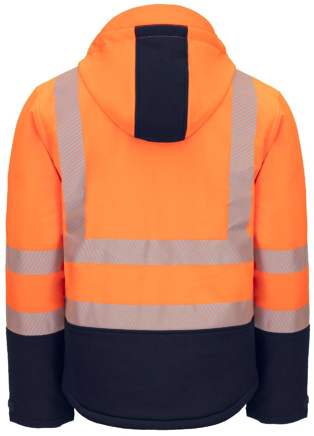 NITRAS MOTION TEX VIZ PLUS, high-visibility winter softshell jacket, various colors, 340 gsm, high wearing comfort thanks to soft softshell material with water- and wind-repellent properties and extended back, adjustable cuffs with Velcro closure and drawstring hem for optimum fit and support, soft and warming winter lining, segmented reflective stripes all around for better visibility, stand-up collar, full-length YKK zipper with chin protection and wind stopper inside and outside, inside, chest and side pockets, pulse warmer for colder temperatures, hood with drawstring for fixation, comfort fit