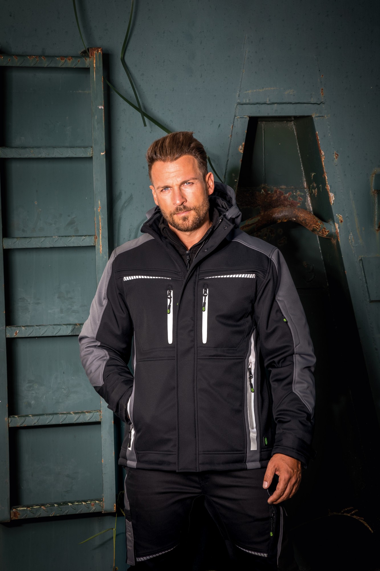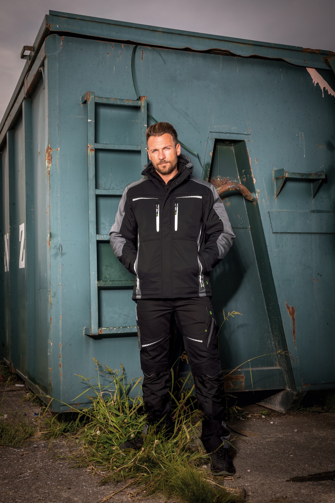 Outer material: 100 % polyester (twill) + TPU (membrane) + 100 % polyester (microfleece), 300 g/m²