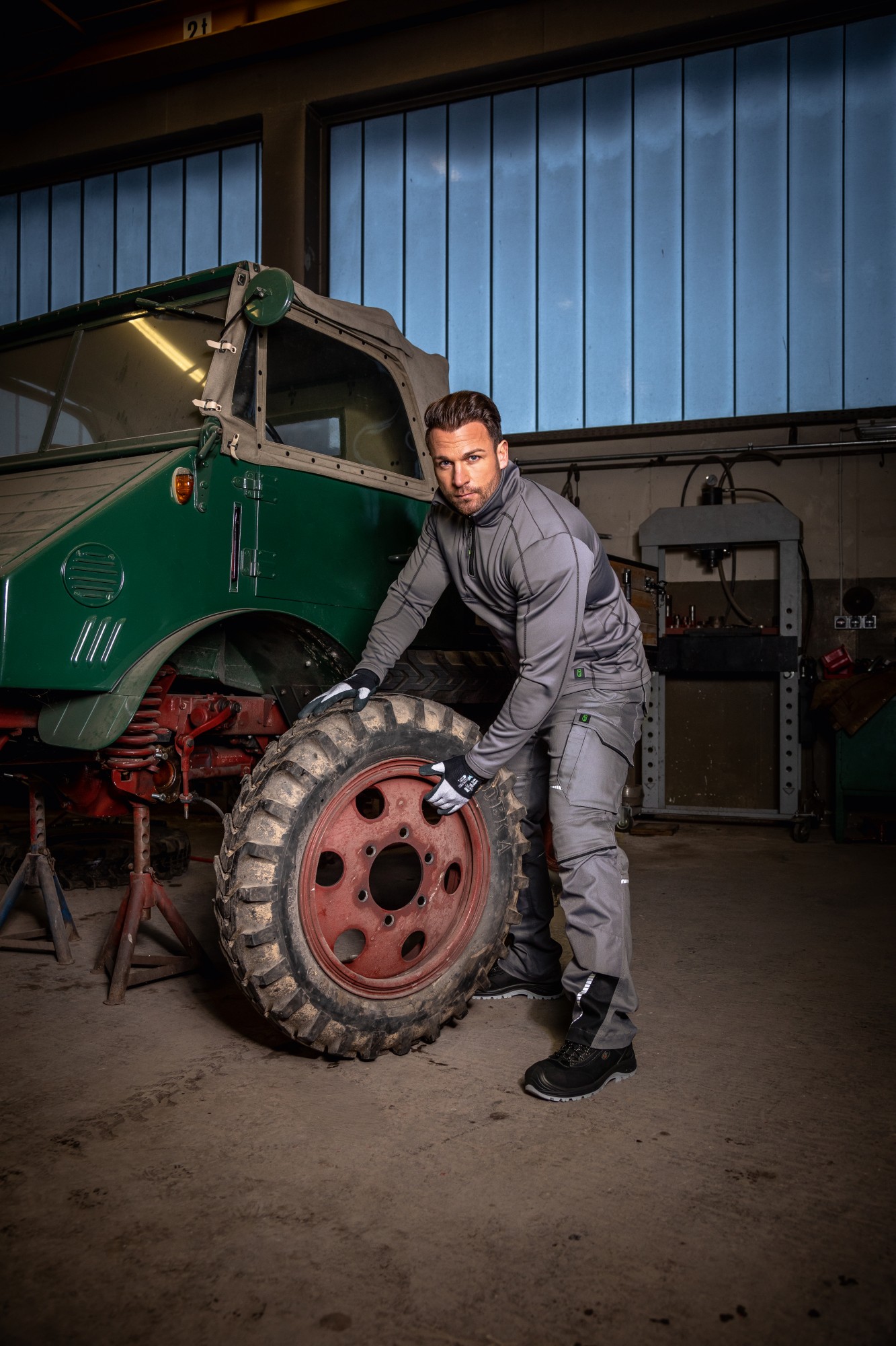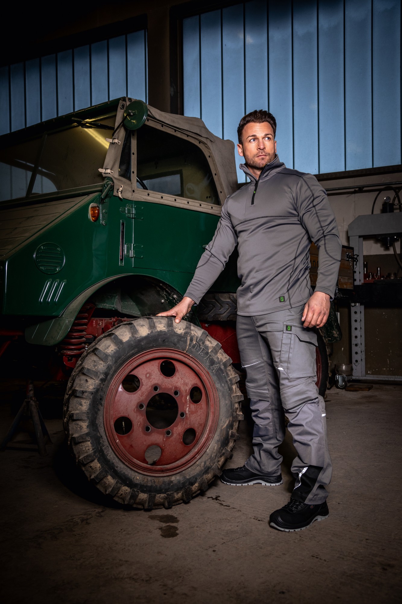 The long-sleeved shirt offers full function at all work! A flexible, breathable and quick-drying stretch COOLPASS fabric, is smooth on the outside and warm on the inside. This provides excellent warmth and comfort. The ergonomic shirt has a stand-up collar with short front zipper and chin guard, a practical chest pocket with zipper and colored flat seams that do not create friction on the skin.