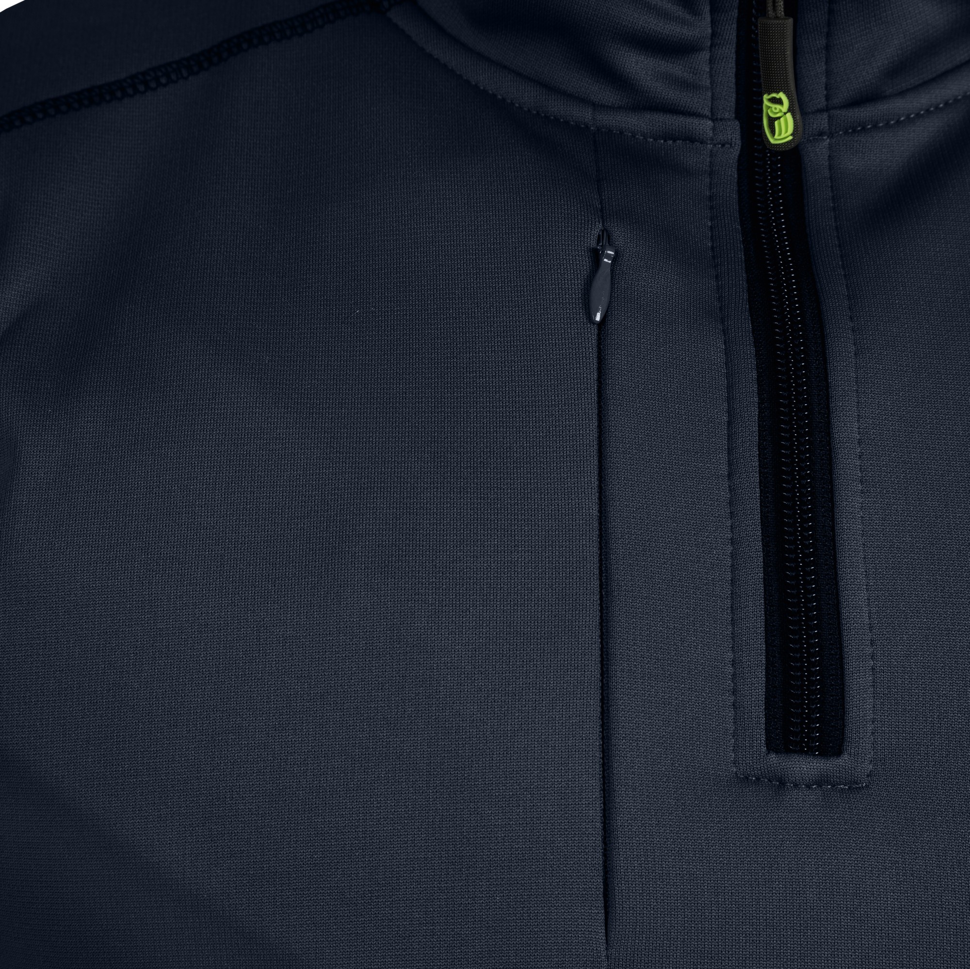 The long-sleeved shirt offers full function at all work! A flexible, breathable and quick-drying stretch COOLPASS fabric, is smooth on the outside and warm on the inside. This provides excellent warmth and comfort. The ergonomic shirt has a stand-up collar with short front zipper and chin guard, a practical chest pocket with zipper and colored flat seams that do not create friction on the skin.