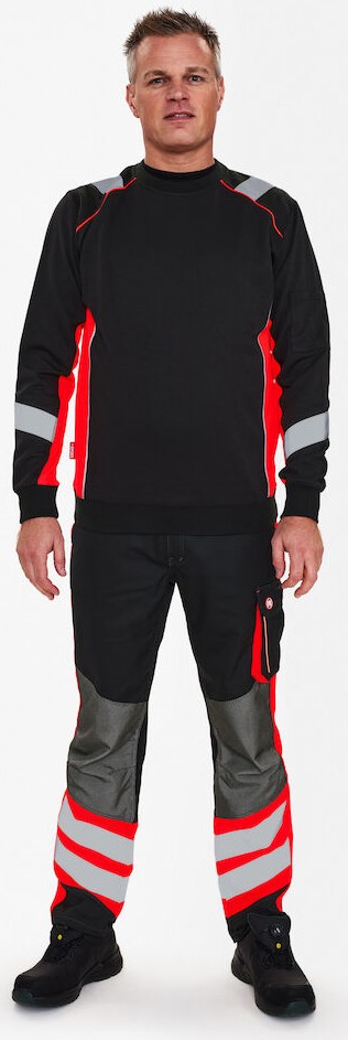 Comfortable and lightweight sweatshirt with knitted cuffs on the collar, waistband and sleeves. There is a pocket on the left sleeve with a slot for pens, for example. Reflective details for increased visibility.