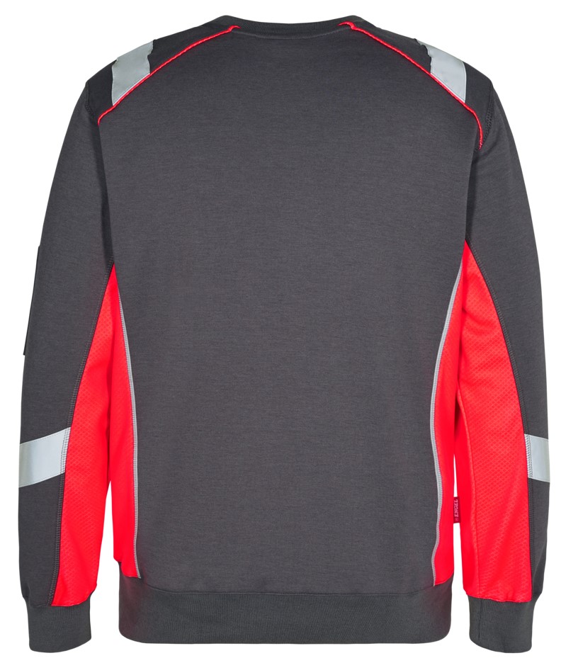 Comfortable and lightweight sweatshirt with knitted cuffs on the collar, waistband and sleeves. There is a pocket on the left sleeve with a slot for pens, for example. Reflective details for increased visibility.