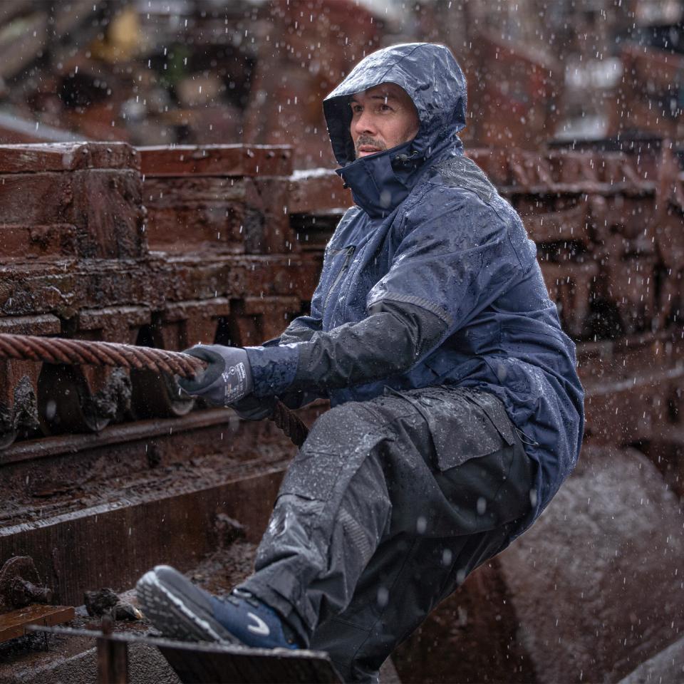 - Hand protection and weather protection strip inside with thumb hole Adjustable waistband Access for finishing Segmented black LOXY® reflectors