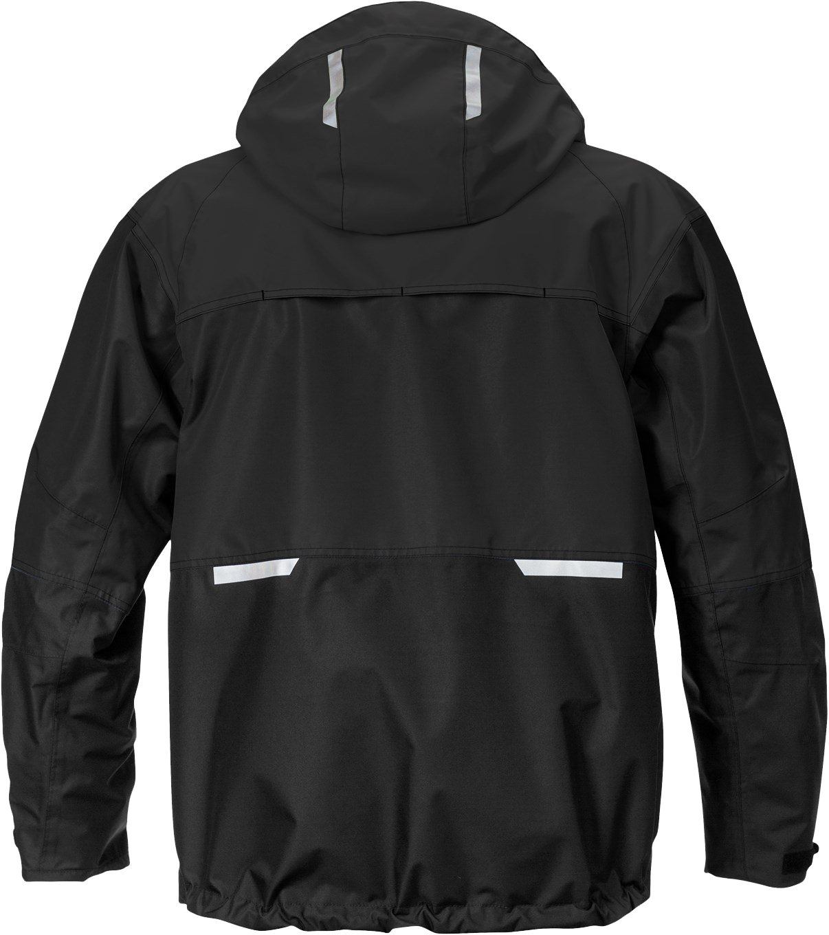 Wind and waterproof outdoor jacket made from breathable Airtech® material. With adjustable and detachable hood, extended back section and reflective details on the sleeves and back.