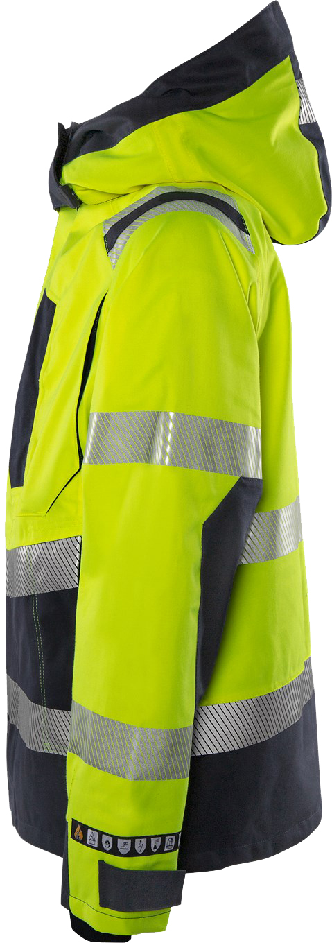 Flame-retardant multi-norm shell jacket made of waterproof, windproof and breathable material. Comfortable all-season jacket with inherent flame protection.