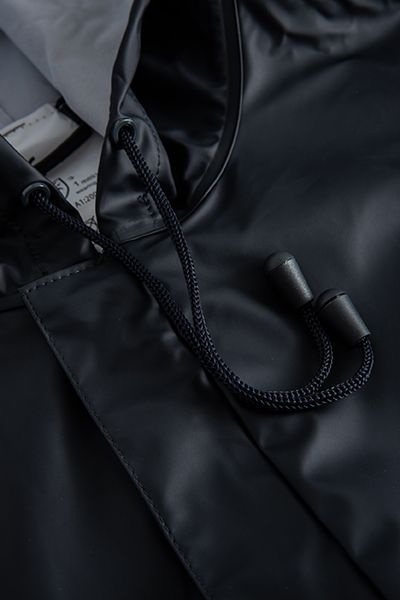 - Fixed hood with drawstring