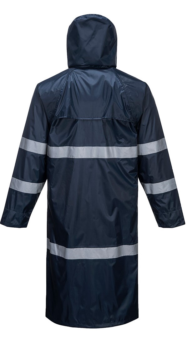 The classic Iona raincoat provides better visibility and extra coverage due to its length. The use of lightweight polyester makes this coat completely waterproof. The F438 also features a detachable hood, pockets for secure storage and underarm ventilation and back vents for added breathability.
