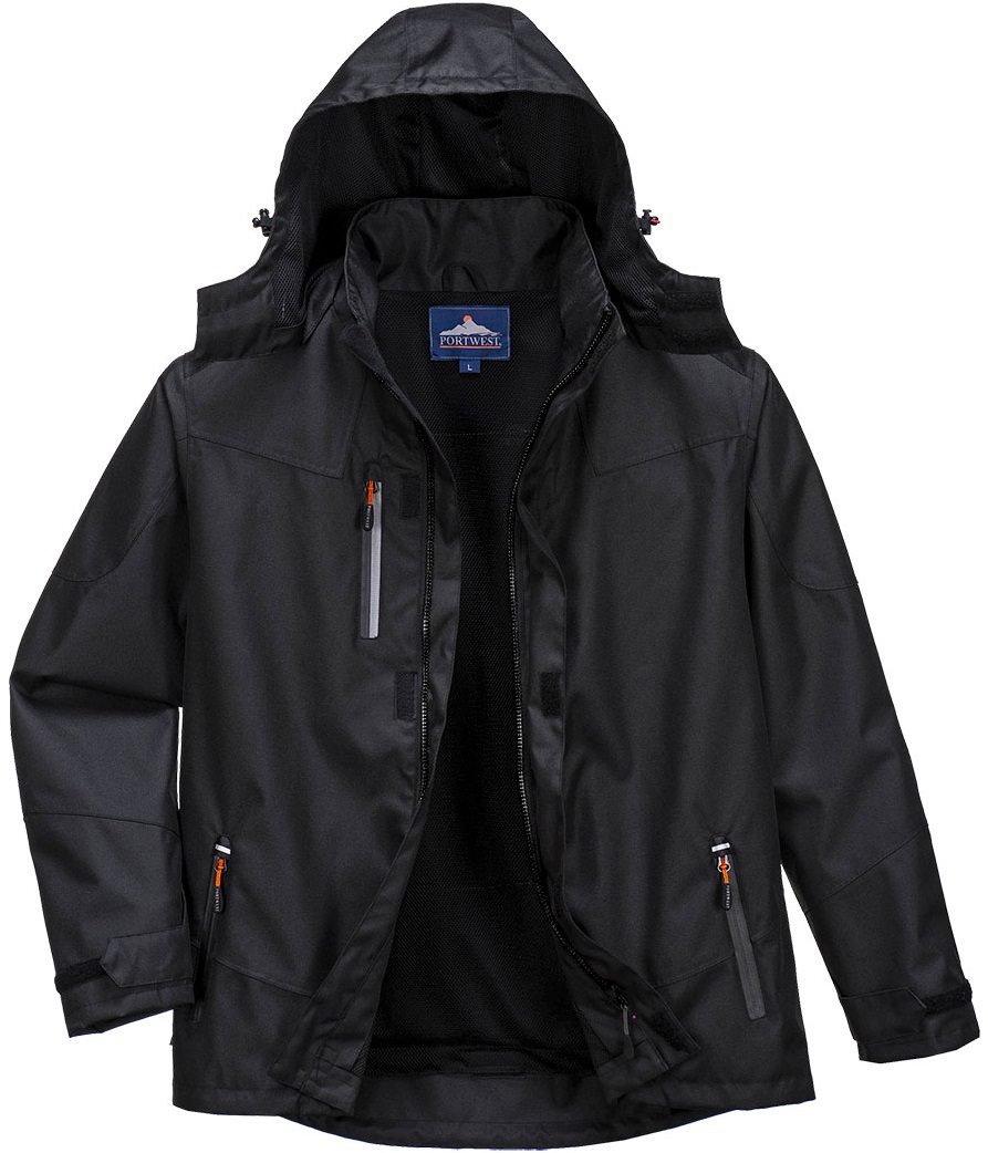 This high performance jacket offers maximum waterprooferdi, windproof and breathable protection all year round. With a very durable outer fabric with air-permeable mesh lining, this jacket provides maximum comfort in all weathers. Many detail solutions, such as waterprooferdizippers, ergonomic cut, hood & many pockets offer excellent function. A sporty fit and an junges design make for a sophisticated jacket.PORTWEST Regenkleidung™ The PORTWESTPWR™ collection is made of ultra-modern, waterprooferdiand breathable textiles. Using innovative technology, the base fabric has been designed to provide a technical barrier against bad weather, guaranteeing maximum watererdiresistance, breathability and windproof protection that far exceeds the current highest requirements of Class 3:3 for EN 343.RainwearThe following rainwear collections offer an excellent selection of designs and colours for many users. The best quality fabrics and high-tech construction techniques have been used to guara