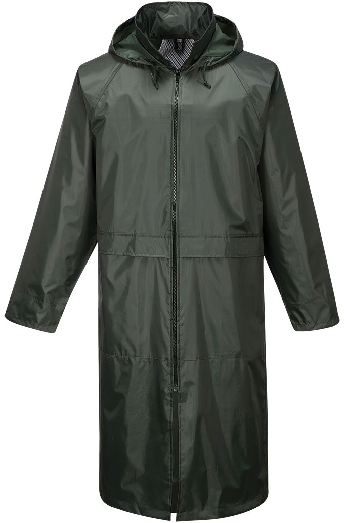 The classic raincoat offers exceptional protection due to its length. Other features include large pockets, a hood with ventilation and ventilation at the back. Classic Rainwear Designed for adverse weather conditions, classic rainwear is not only practical and durable, it also offers good value for money. Sophisticated design and welded seams guarantee maximum comfort and protection. RainwearThe following rainwear collections offer an excellent selection of designs and colours for many users. The best quality fabrics and high-tech construction techniques have been used to guarantee the highest level of weather protection. Tested to withstand the hardnesses of daily wear. Each garment is made with care to ensure satisfaction every time it is worn.Product features: Standards EN 343 Class 3:1 Lightweight, waterprooferdifabric with welded seams prevents water penetration Welded seams for additional protection against moisture Front zipper for easy access 2 generous pockets Stowable hood