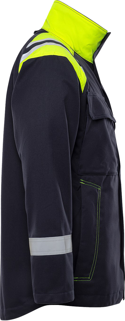 Jacket with inherent flame protection, without metal parts, suitable for ATEX environments. Suitable for industrial laundering.