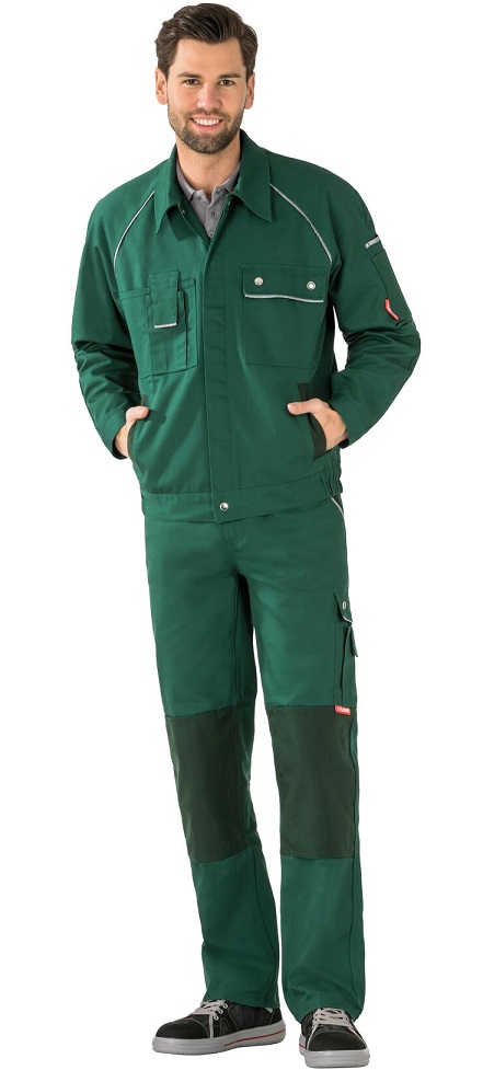 2 set-in Cordura® pouch pockets, reflective piping on sleeve insert and pocket flaps, 2 breast pockets, left with flap and press studs, right with additional mobile phone pocket, sleeve pocket left with double pencilelten compartments, elasticated waistband, concealed press stud front closure, adjustable cuffs with press studs, hanger in collar.