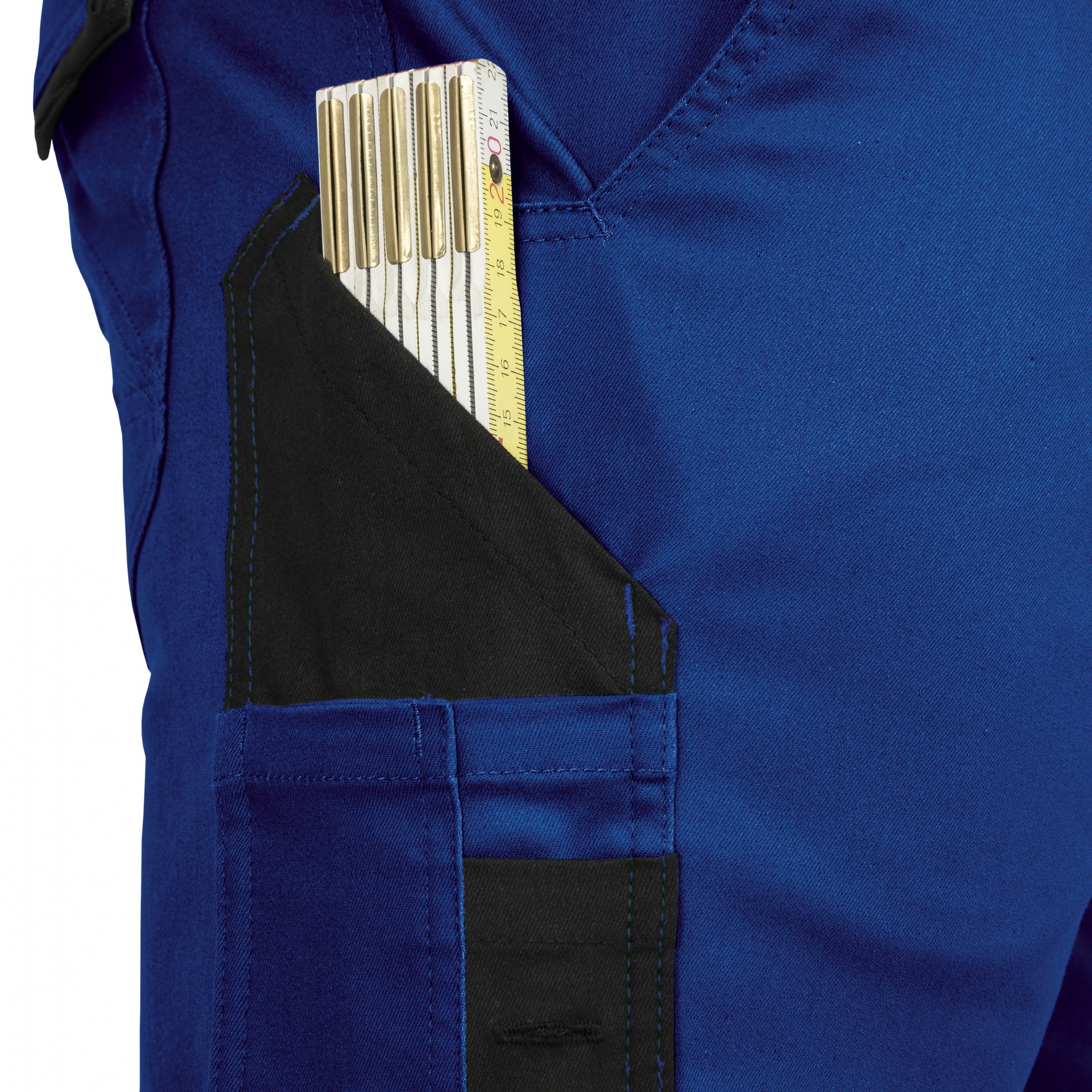 Double ruler pocket including four pen pockets on the right leg