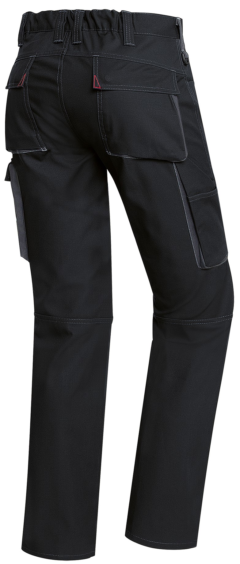 - Double waistband button and back stretch waistband for optimal fit, ergonomic cut, D-ring, 2 side pockets, 2 back pockets closable with flap and printer