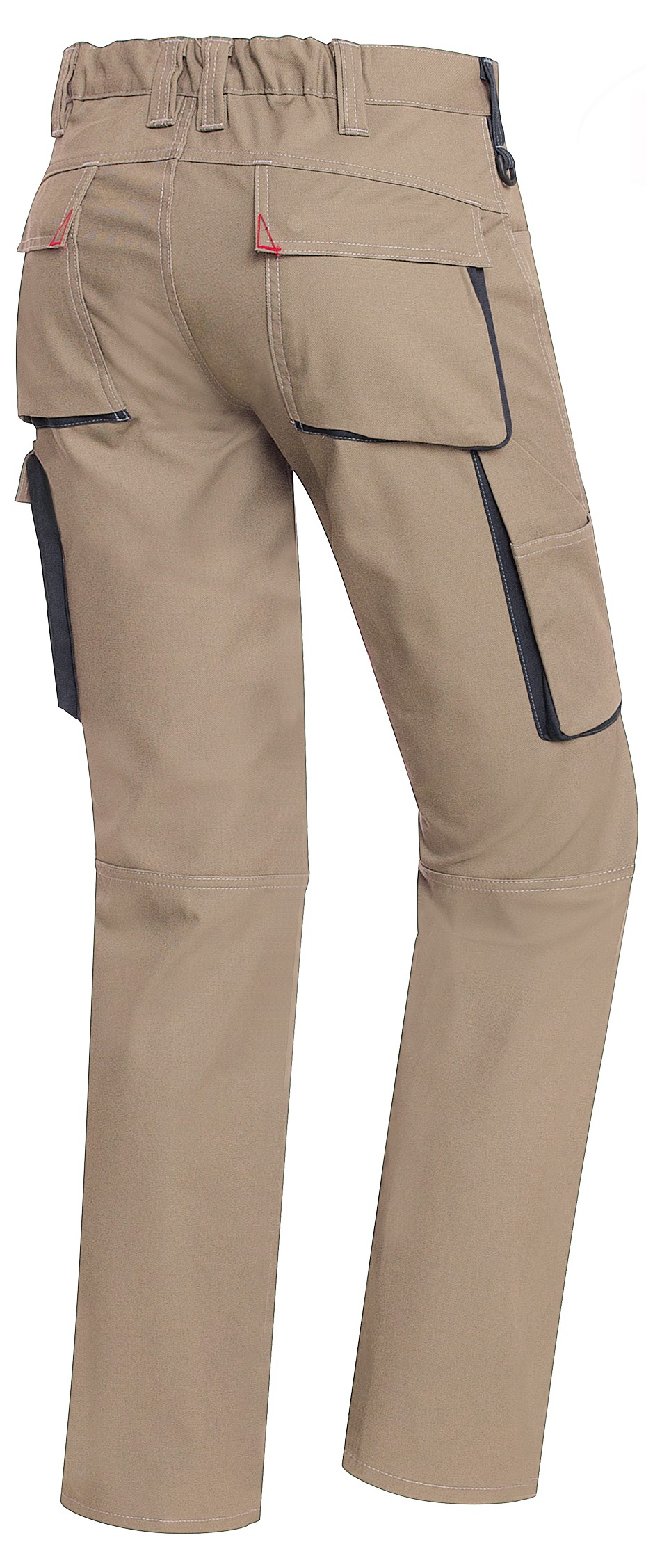- Double waistband button and back stretch waistband for optimal fit, ergonomic cut, D-ring, 2 side pockets, 2 back pockets closable with flap and printer