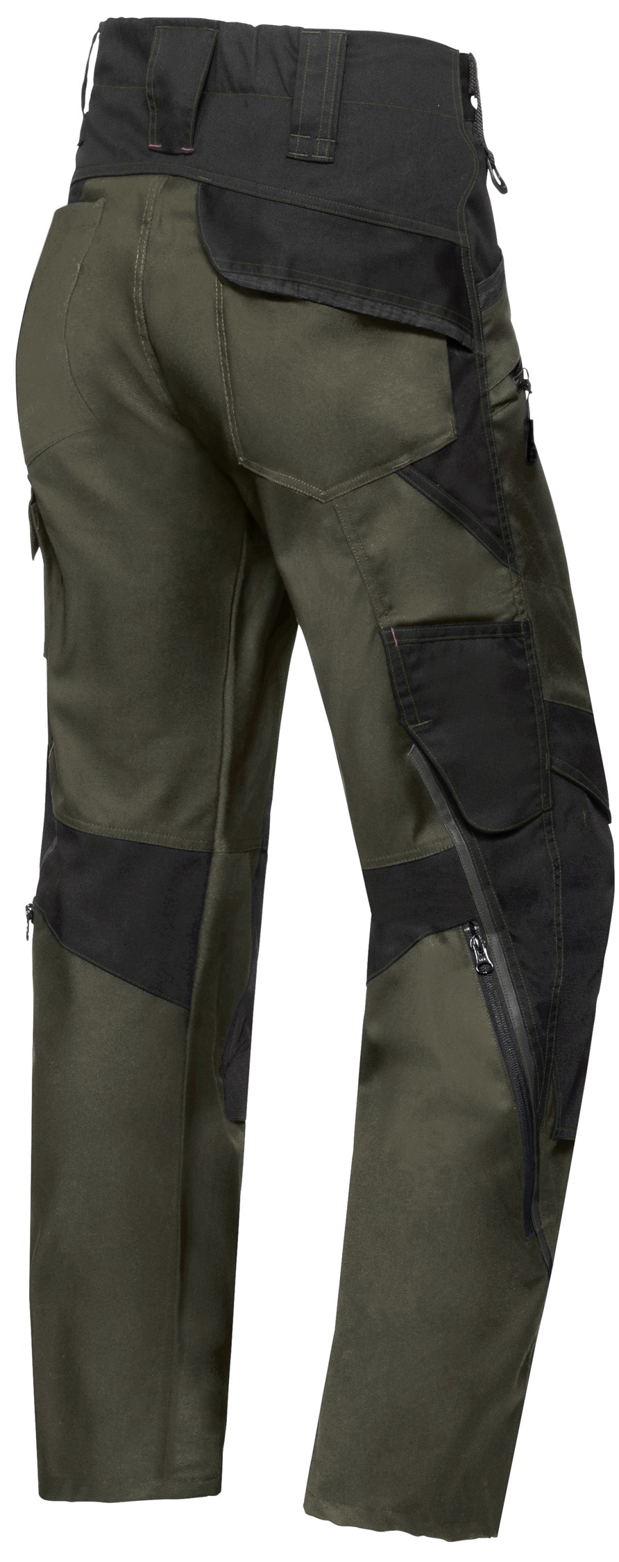 Made for you: raised back waistband for optimal fit, leg vents for a more comfortable feel, with stretch knee pad pockets for knee pads, slim-ergonomic fit.