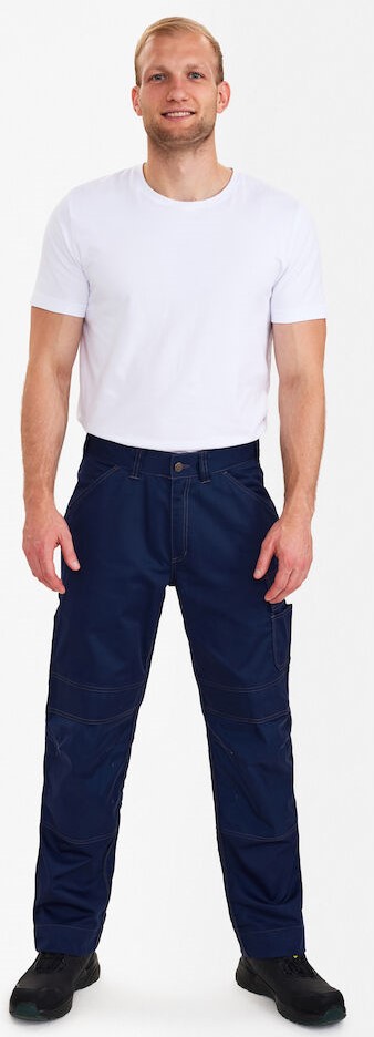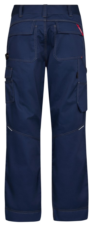 Functional craftsman trousers with contrasting topstitching. Optimum fit, ergonomically shaped knees. Two spacious, slanted slit pockets at the front. Two back pockets with flap. Thigh pocket with flap and inserts for pens, for example. Free-hanging, reinforced folding rule pocket with extra compartments guarantees optimum freedom of movement. Adjustable hammer loop. Reinforced knee pockets with two adjustment options for knee pads. Reinforced hem on trouser legs for extra wear resistance. High visibility thanks to reflective piping in the middle of the back of the trouser legs. The pants have an extra wide turn-up so that the crotch length can be extended if required. For additional leg length, only one hem needs to be unzipped, behind which there is an additional hem.